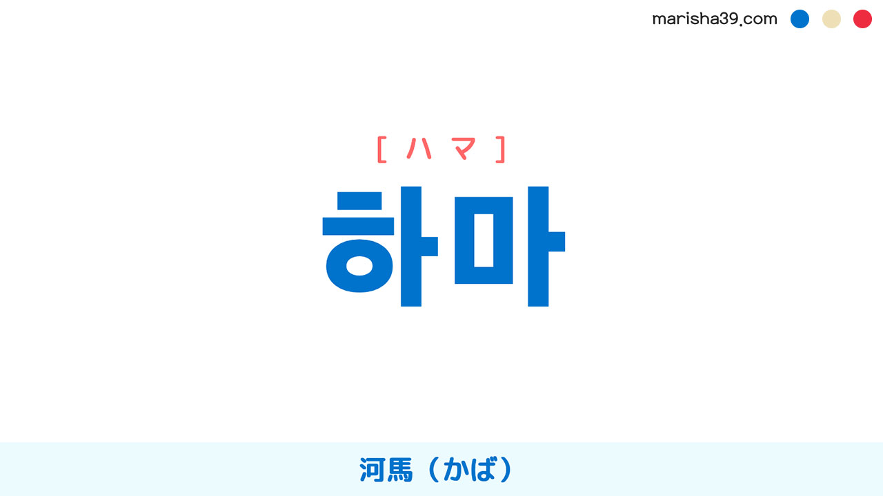 | 韓国語ハングル | 하마韓国語の発音を聞く |