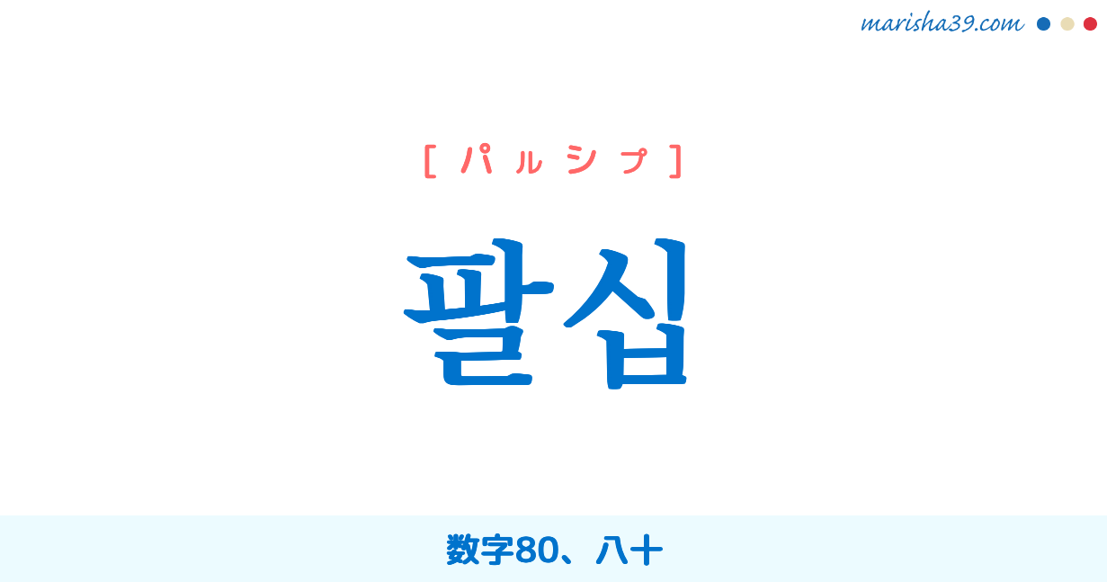 韓国語の単語「팔십(パルシプ)」を勉強しましょう。音声付きなので、聞いてネイティブ発音を練習してみてください♪