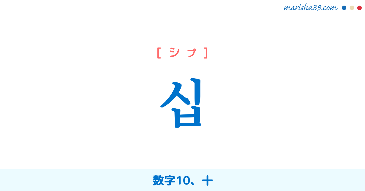 韓国語「십」の意味は、漢数字の「10、十」です。